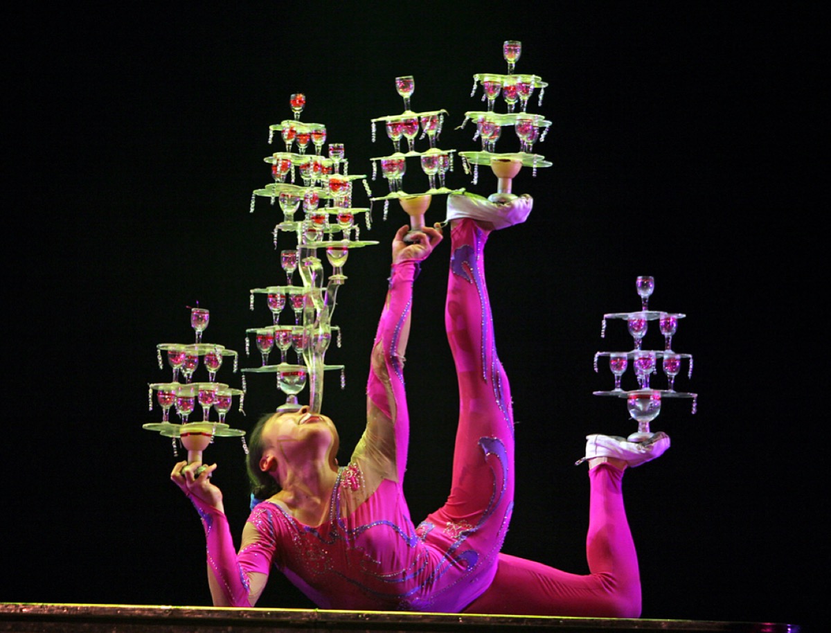 Труппа акробатов из Китая, прыгающие через деревянные кольца, очень понравились.