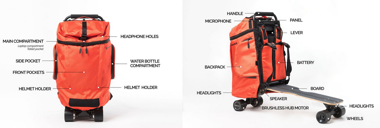 Любопытная разработка - рюкзак-электроскейт Movpak.