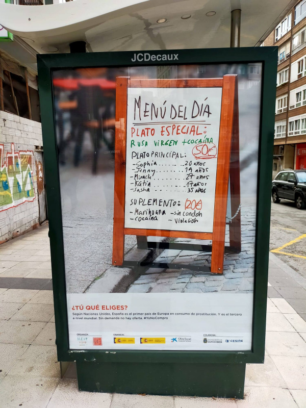 Некоторое время назад эта организация разместила на испанских улицах вот этот плакат, который, по мнению создателей, осуждает сексуальную эксплуатацию женщин. Кстати, организация проводила конкурс среди студентов на лучший плакат, и победил как раз вот этот.