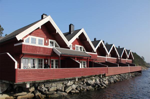 Симпатичное место: суровая норвежская природа, много воды и коттеджики, откуда, кажется, можно ловить рыбу прямо с балкона.