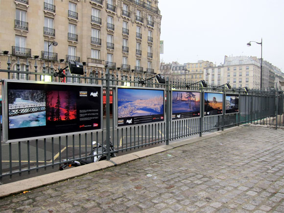 Может это фотовыставка какая, а РЖД там спонсор? Просто какой смысл им в Париже рекламироваться?