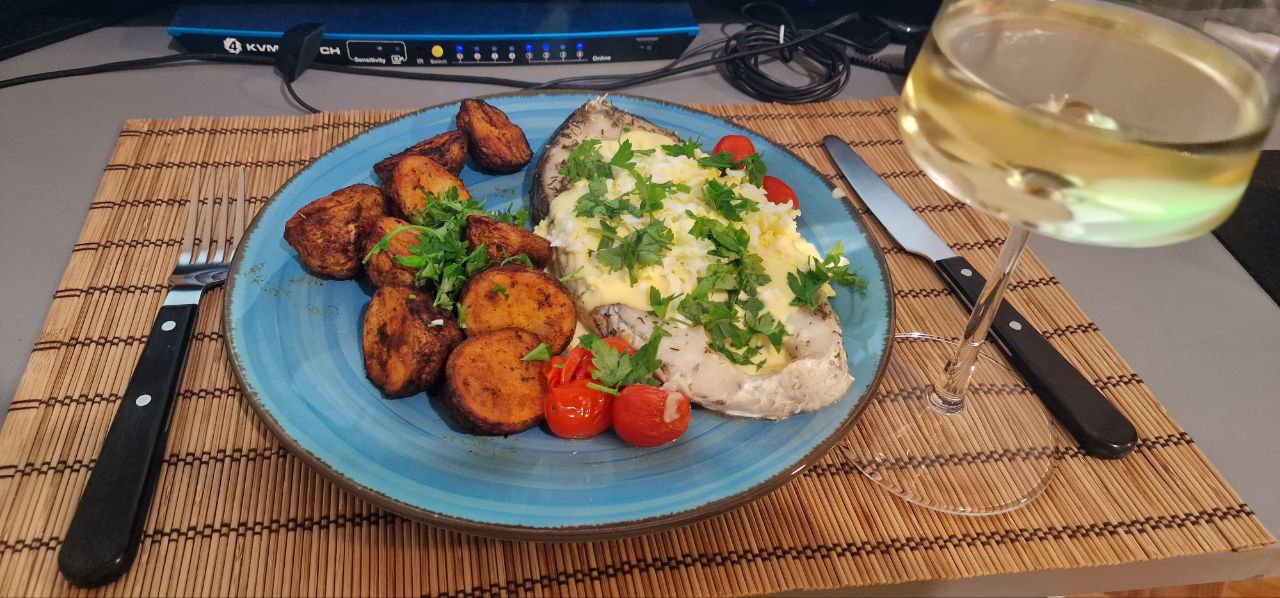 Вино из Алентежу - Cartuxa, что нашел в Пингодосе. Почему-то найти достойное красное в бюджетном диапазоне - ноль (почти) вопросов. А с белым сильно сложнее. Пришлось в честь праздника разориться на 14 евро.