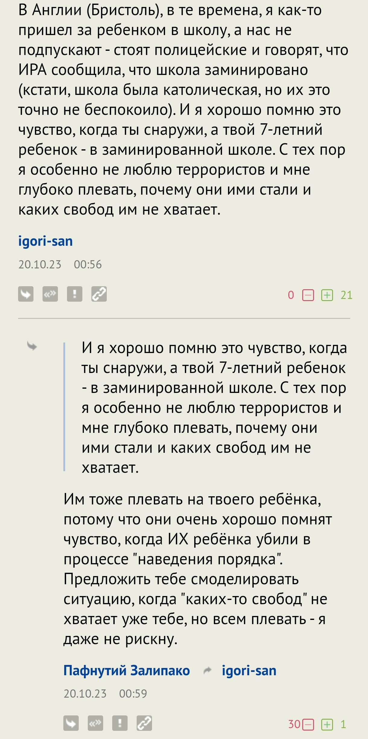 Разумеется, запости свой мерзкий пост, в котором ты, и только ты, на примере ИРА универсально оправдал террористов, убивающих детей. Делай это как можно чаще, чтобы до всех дошла твоя суть.
