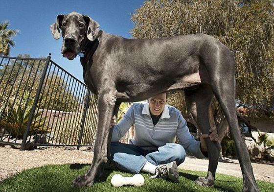 Читал статью о том, как собак научили по запаху определять наличие у человека COVID-19, в конце статьи наткнулся на вот такую фотографию самой большой собаки в мире.