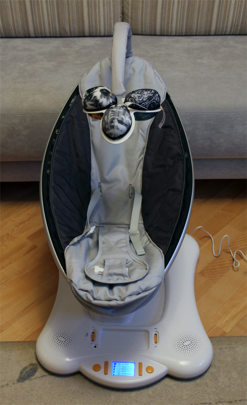 Называется устройство MamaRoo - название, судя по всему, взялось от мамы кенгуренка крошки Ру. Разработка американская, но продается и у нас. Придумали эту штуку, как написано на американском сайте, пять многодетных мамаш с количеством детей от пяти до пятидесяти, и все эти мамаши, разумеется, совершенно умотались укачивать эту ораву. "Надо сделать электронную укачивалку!" - решили мамаши и дали задание талантливым инженерам, которые прикрепили ко всем мамашам и всем отпрыскам датчики, а потом долго замеряли, какие же такие замысловатые движения при этом производятся. А так как мамаши во время укачивания готовили каши, стирали пеленки, заполняли счета и ругались с водопроводчиками, траектория движения у инженеров получилась крайне приближенной к реальности, в результате чего малыши в этой укачивалке лежат, не пискнув, и только изредко радостно попукивают.