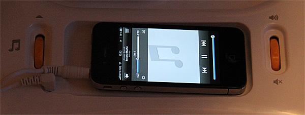 Кроме того, там есть еще два регулятора - выбор звуков живой природы: птички, автомобили, цикады, деревья, волны и крики воспитательницы Аделаиды Сергеевны, - ну и регулировка уровня звука. Также там есть вход под любой MP3-плеер (переходник входит в комплект), так что укачивалка может орать малышу вашу любимую песню Aerosmith.