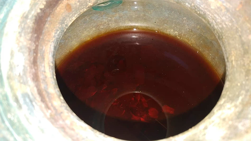 Жидкость в урне стала красновато-коричневой из-за химических реакций, произошедших за 2 000 лет, прошедших с тех пор, как в нее было налито белое вино. Фотография: Хуан Мануэль Роман