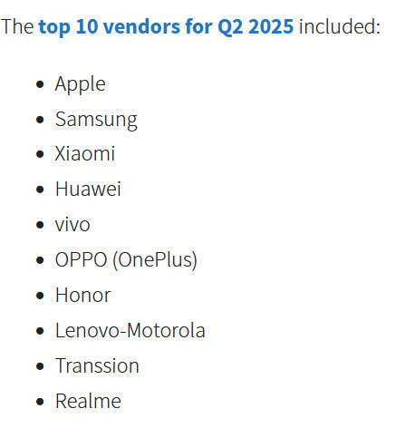 Xiaomi заняла третье место с ростом поставок на 1,8% по сравнению с предыдущим годом до 43,5 млн единиц, чему способствовало расширение присутствия компании в Европе и Латинской Америке благодаря сериям Redmi Note и Poco. Однако поставки Xiaomi в Китае сократились на 1,7% по сравнению с предыдущим годом до 10 млн единиц.