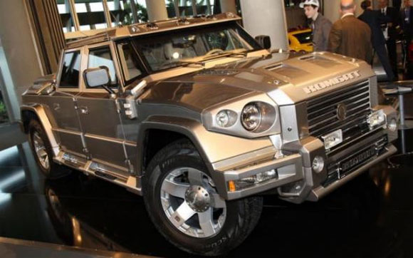 Наши выпендрились и сделали самый дорогой в мире внедорожник под назвавнием "Комбат". Это очень актуально для страны, которая выпускает самые плохие в мире автомобили. Но внедорожник тем не менее знаковый. Весь в броне, выдерживает автоматную очередь и толпу футбольных фанатов. Внутри напичкан самой дорогой в мире кожей из члена кита, брюликами, мобильниками Vertu и самой дорогой в мире водкой - "Путинкой". В магнитоле намертво зашита флешка с песней "Батяня-комбат". В общем, серьезная машинка. Очень удобно за картошкой на такой ездить - вон, даже князь Альберт заинтересовался.