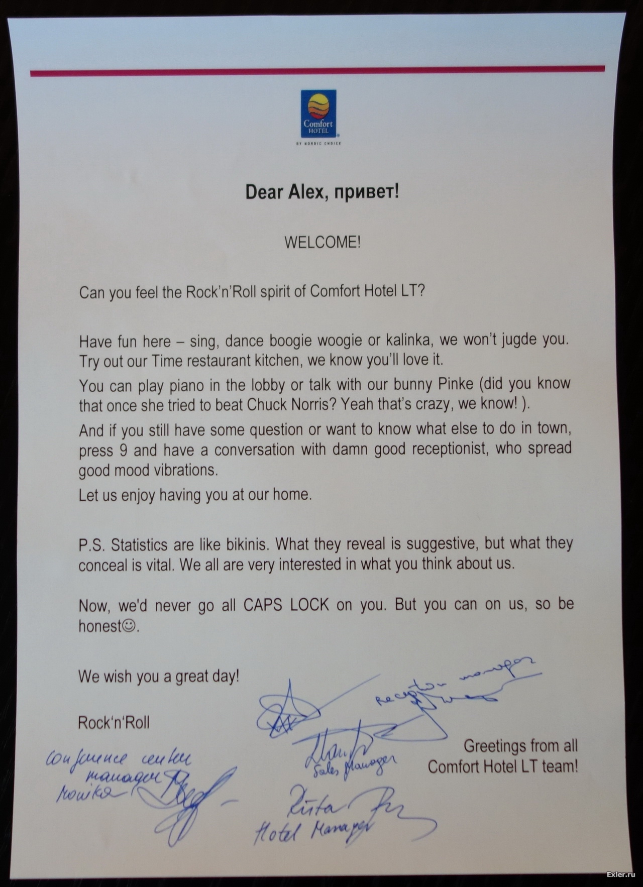 В Вильнюсе друзья меня поселили в Comfort Hotel LT. Они честно признались, что этот отель сами толком не знают, потому что он открылся совсем недавно, но отель должен быть хороший.