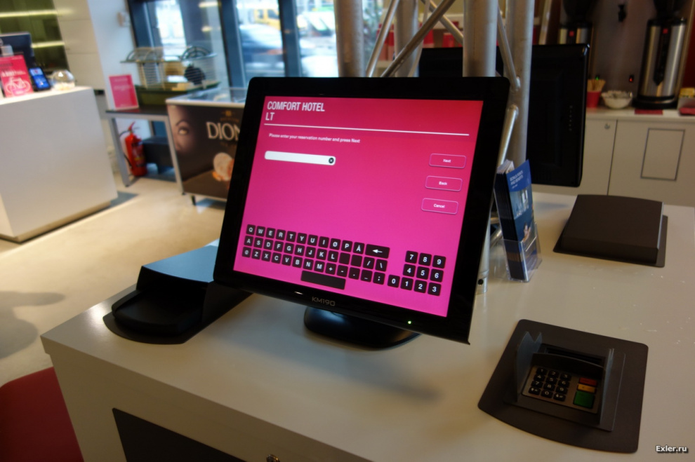 В Амстердаме прямо в аэропорту (справа от выхода) есть отель CitizenshipM, также без ресепшна, с подобной системой регистрации. А карточку-ключ потом удобно использовать в качестве бирки для багажа (на карточке есть соответствующие поля + там же рядом в тазике лежат шнурки для использования с этой целью).