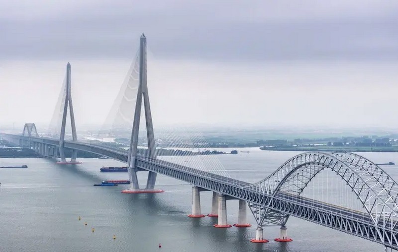Фундамент моста усилен для сопротивления мощному течению реки Янцзы — третьей по длине реки в мире.
