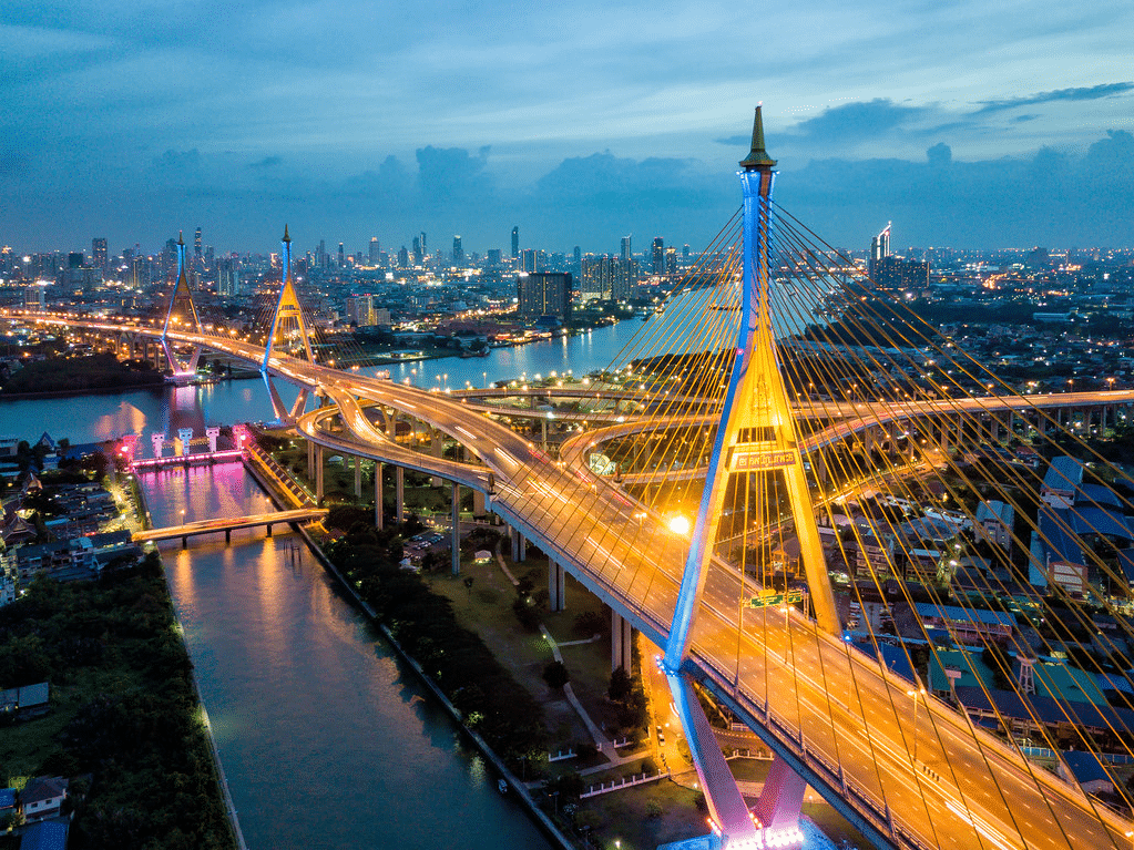 Опорные башни моста высотой 350 метров, сопоставимы по высоте с 120-этажным небоскребом, выполнены в ромбовидной форме из стали и бетона для высокой устойчивости к нагрузкам, течениям и перепадам температуры.