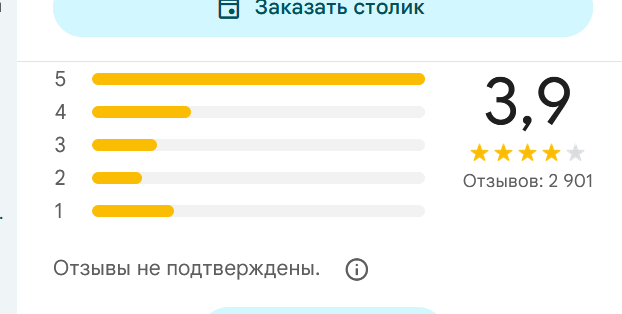 Ну и рейтинг на Гугле 3.9 при 3000 отзывах я бы не назвала чем-то запредельным. Очень много 1, народ жалуется на медленное обслуживание.