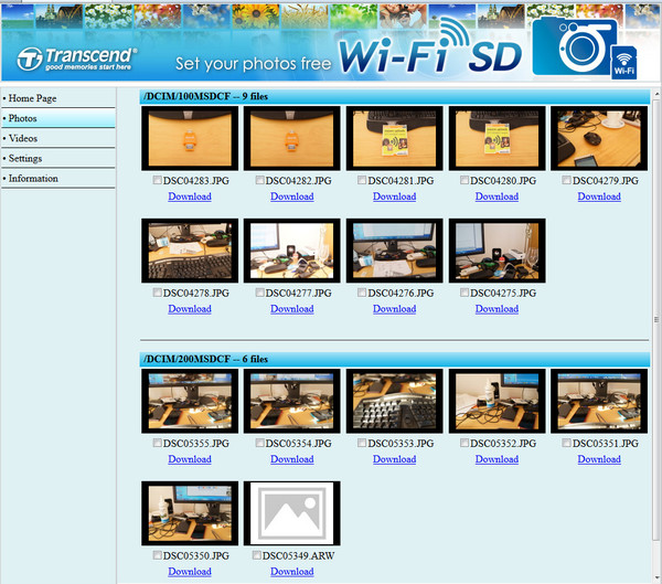А вот для работы с персональным компьютером - практически не подходит. У нее нет своей программы-клиента, так что фото-видео не будут попадать на компьютер автоматически, что мне было нужно. Чтобы работать с картой, надо подключить компьютер к ее сети Wi-Fi, а для доступа к содержимому карты войти через браузер на адрес http://192.168.11.254/. Там появится вот такой интерфейс.