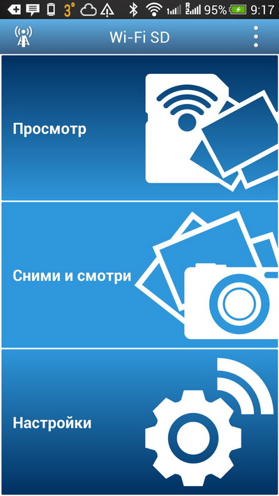 На смартфон-планшет надо установить приложение WiFiSD. После этого подключиться к сети WiFiSD и запустить приложение.