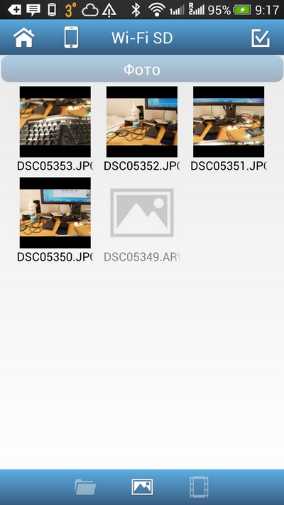 Карточка тоже умеет поднимать WiFi-сеть. И всегда настроена сливать фотографии на телефон. На телефоне (Android, разумеется) сопроводительное приложение. Оно и принимает фотографии с карточки, и сливает их на настольный компьютер, когда видит интернет.