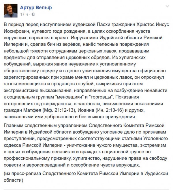 Сравнение с Иисусом Иосифовичем мягко сказать не корректное
