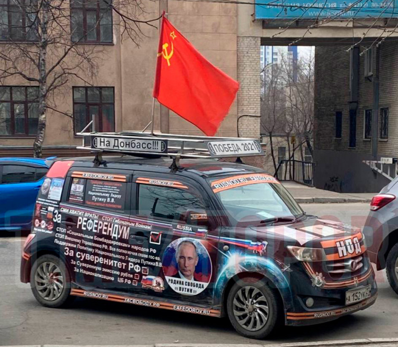 Это уже не вялотекущая, это уже тяжелая шизофрения. Особенно трогательно на ней смотрится флаг тридцать один год как не существующего государства (туда ему была и дорога) и надпись "СМИ хватит врать". Via