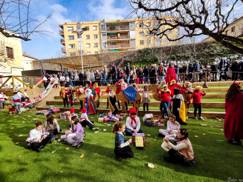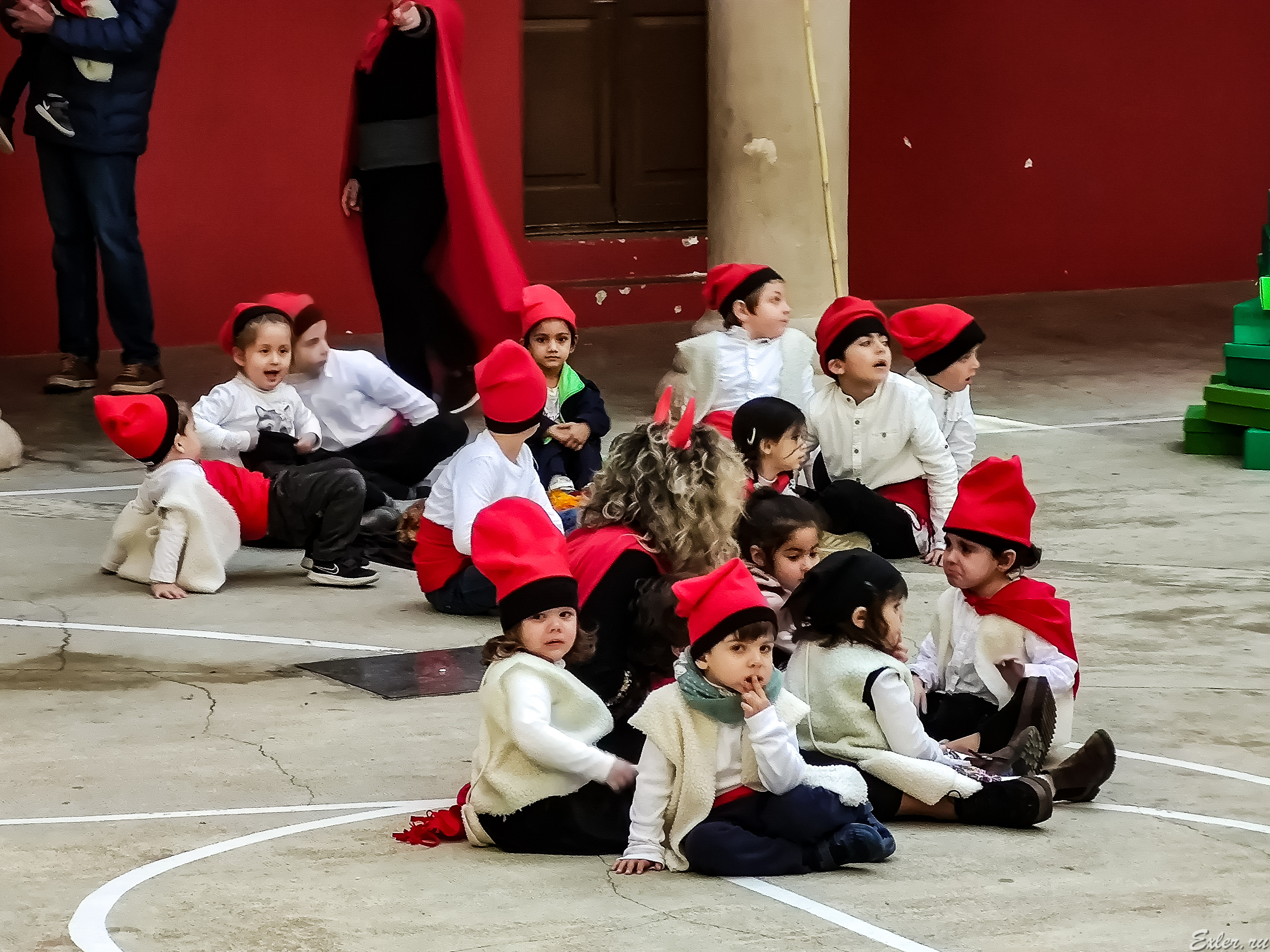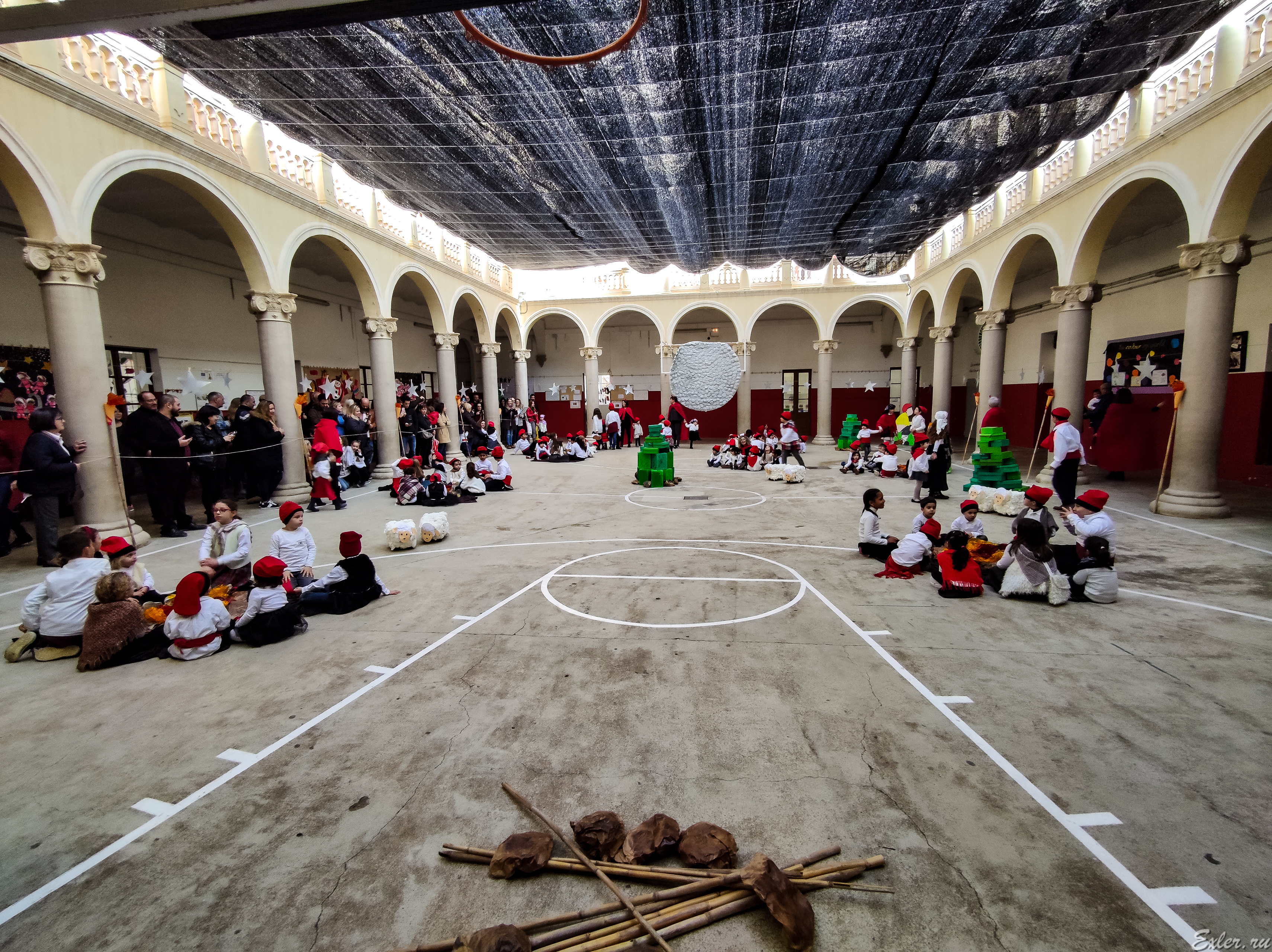 Ну и последняя инсталляция в спортивном зале - крестьяне в национальных каталонских шапочках "барретин".