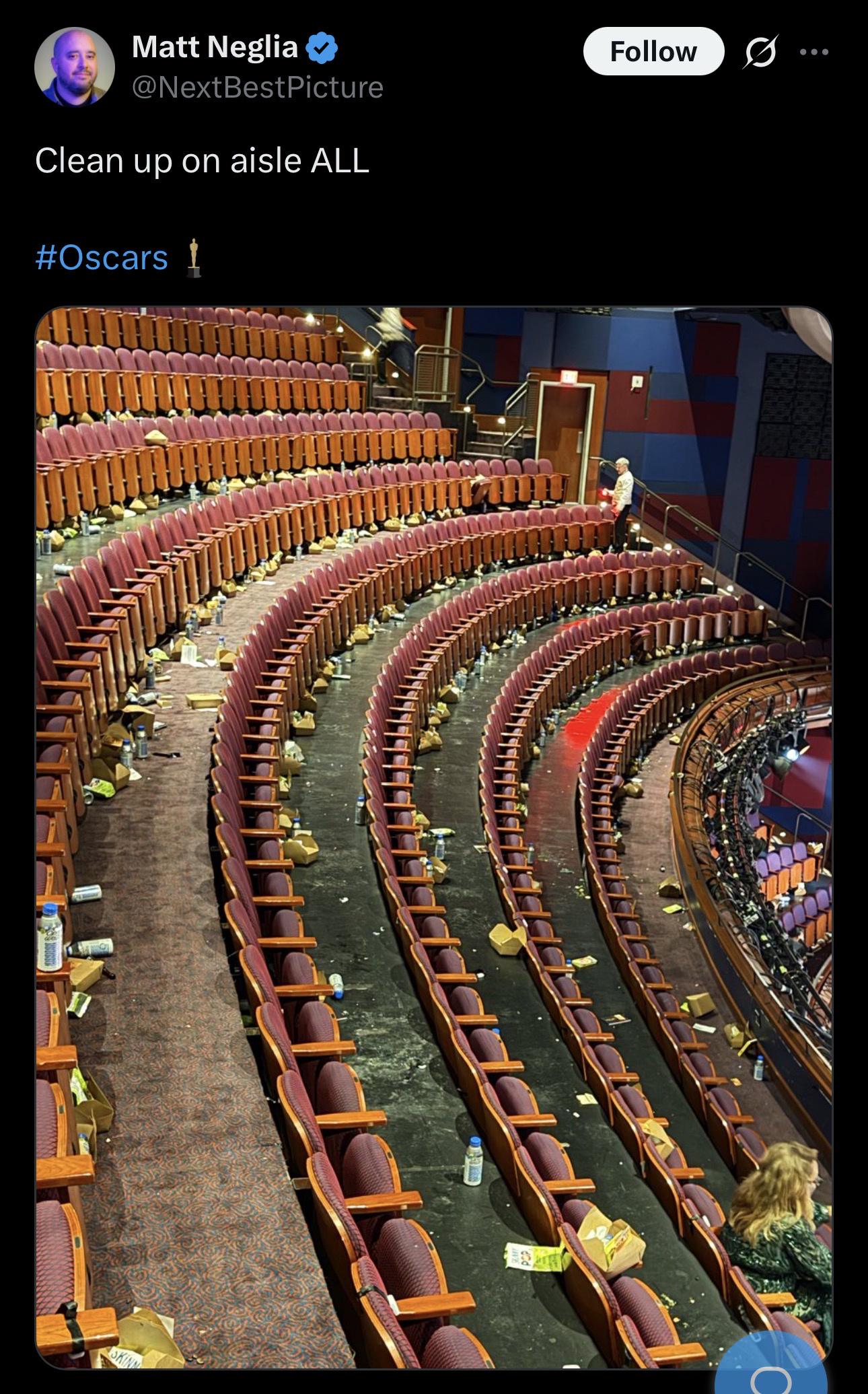 "Оскар" нивелировал сам себя. Полностью. Теперь, если у фильма есть "Оскар" - это вообще ничего не значит. Это может быть как и шедевр. Так и полная хуйня. Причем, хуйня - с большей вероятностью.