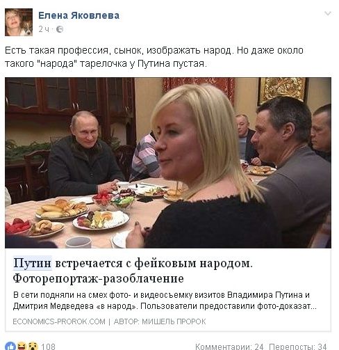 Мол, ребята, вы правда думаете, что президент приехал в деревню, зашёл в первый попавшийся дом, а там на столе самовар и пирожки с капустой?