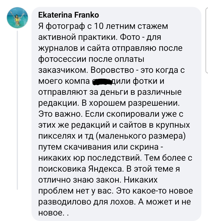 Екатерина утверждает, что отлично знает закон, но не приводит ни единой ссылки на какие-либо положения, подтверждающие её слова.