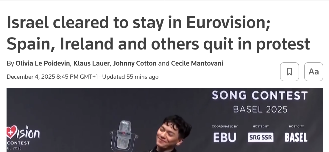 BBC: Netherlands, Spain, Ireland and Slovenia boycott Eurovision after Israel allowed to compete