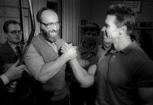 А я этот визит хорошо помню. По телевизору показывали, как Арнольд идет по заснеженной Красной площади в форме полковника милиции. И потом показывали встречу с Власовым и как Шварценеггер пробует самопальные тренажеры в спортивном зале. Еще помню, что Арнольд при этом курил здоровенную кубинскую сигару.