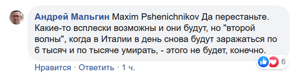 На мой взгляд, заявлять об эффективности или неэффективности шведской модели на данный момент - несколько безрассудно, потому что совершенно неизвестно (и Мальгину в том числе), будет ли осенью вторая волна коронавируса, какой именно она будет, а главное - какой она будет для Италии и для Швеции. Вот только тогда можно будет сделать какие-то более или менее достоверные выводы.