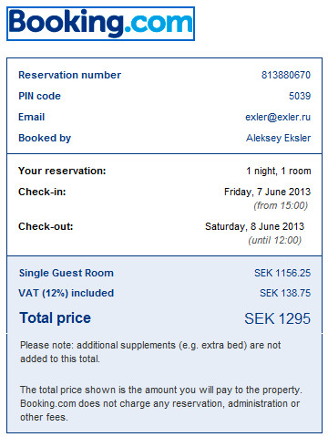 Приехал в отель, заселяюсь. Мне говорят, что у меня завтрак не входит в стоимость, мол, хотите включить? А там в бронировании на Booking было написано, что завтрак стоит SEK 112, то есть 13 евро. Говорю, чтобы внесли.