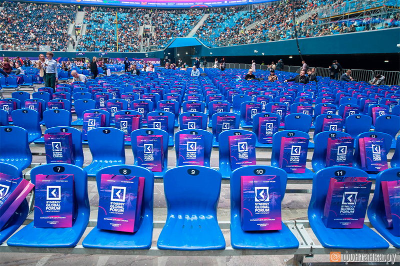 Что-то пошло не так с самого начала. Шатра, в котором должны были выдавать аккредитации журналистам, на месте не оказалось. У гейта номер один, через который прессу все же пропускали, выстроилась очередь. И это была единственная очередь на вход. Участники форума вяло затекали через турникеты. Так немноголюдно на стадионе не бывало со времен пробных пусков во время оно.