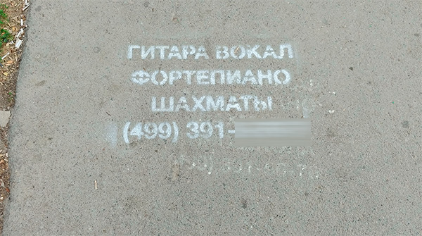 Объявление на асфальте. Гитара, вокал, фортепиано и шахматы - спектр широк, как я считаю. Но бокса не хватает, бокса!