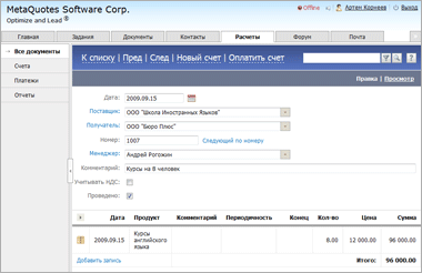 Есть в модуле «Расчеты» еще одна полезная особенность – так называемая «периодичность». Практически у каждой компании есть счета, которые необходимо регулярно выставлять клиентам - ежедневно, ежемесячно, ежеквартально или ежегодно. Теперь достаточно указать нужную вам периодичность в детальной части счета, и при наступлении «часа X» он сам будет изменяться.