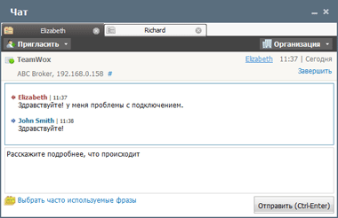 В системе групповой работы TeamWox есть чат, с помощью которого сотрудники компании смогут безопасно общаться между собой. А вы будете уверены, что конфиденциальная информация не покинет пределы компании, ведь все сообщения шифруются. Чат также может выполнять функции онлайн-консультанта, то есть с его помощью сотрудники компании смогут общаться с клиентами и внешними организациями. Вся информация автоматически сохраняется и вы всегда можете посмотреть историю общения любого менеджера с клиентами.