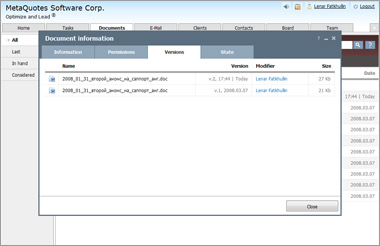 Полный электронный документооборот компании. Любые виды документов (договоры, акты, отсканированные документы), хранятся все промежуточные версии, чтобы к ним всегда можно было вернуться.