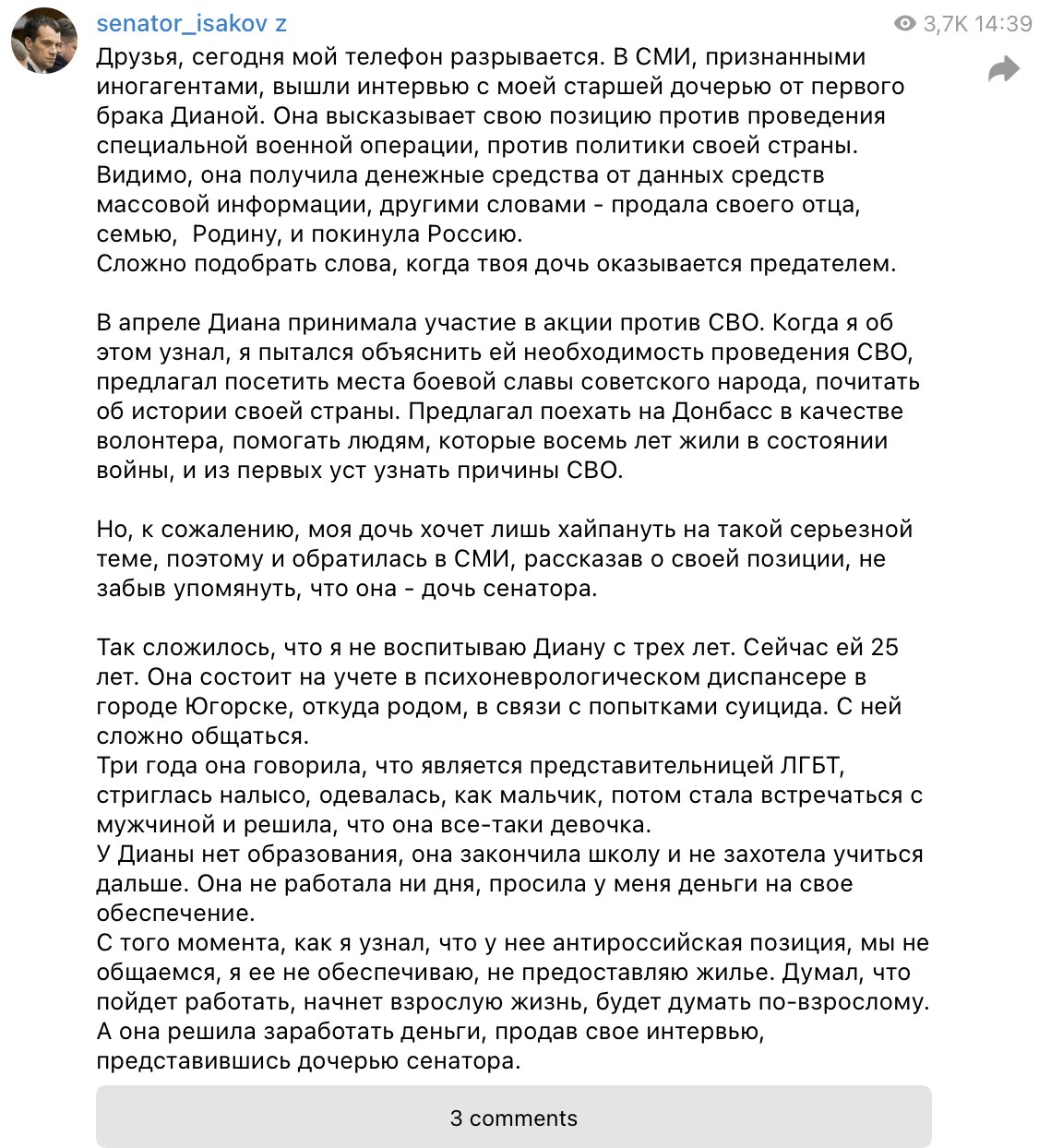 А родители и их адвокат (к слову, довольно шарящий в жалобах в ЕСПЧ) теперь пытаются размахивать "делом Саблиной" (фамилия девушки) на предмет того, что у нас тут беззаконие и надо что-то делать. По итогу могут добиться того же эффекта, что и чемпион специальной олимпиады журнализд Мамонтов, из-за которого транспланталогия в стране встала на 10 лет.