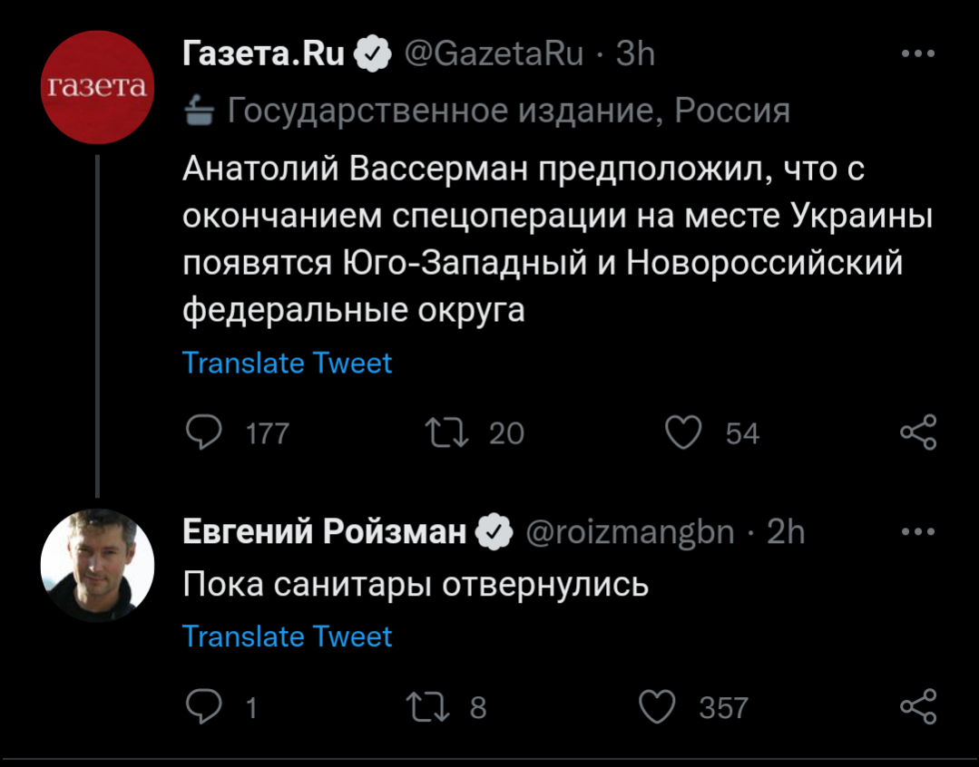Самое печальное в этой истории, не то что верхушка четвертого рейха с февраля постит бред, преступный и фашистский бред.