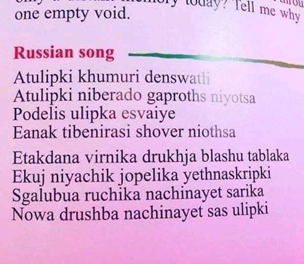 Кажется, мы примерно так же на русском в школе тексты песен "Битлов" записывали ?