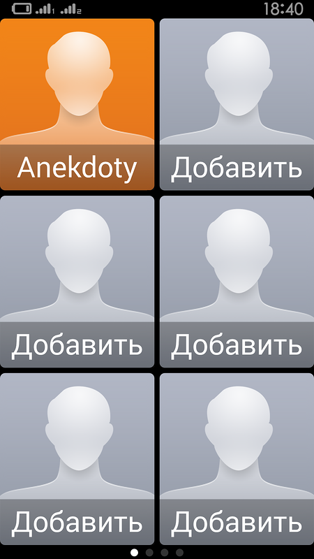 Контакты на втором рабочем столе. На остальные столы можно добавлять нужные приложения. Иконки при этом такие же крупные.