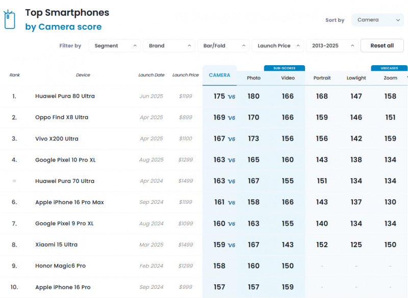 Специалисты DXOMark протестировали камеры смартфона Google Pixel 10 Pro XL и поставили его на 4-е место в рейтинговой таблице.