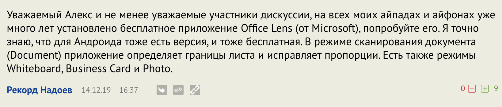Но я перешел с него на Adobe Scan - он не такой тормозной и сразу сохраняет в PDF. Microsoft Lens особенно хорош если в OneNote сбрасывать документы.