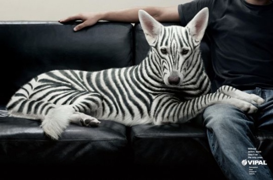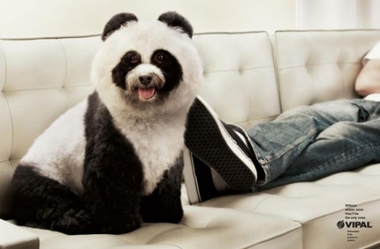 Интересно, они собачек для рекламы реально так раскрашивали или же это просто "Фотошоп"? Панда получилась просто шикарно.