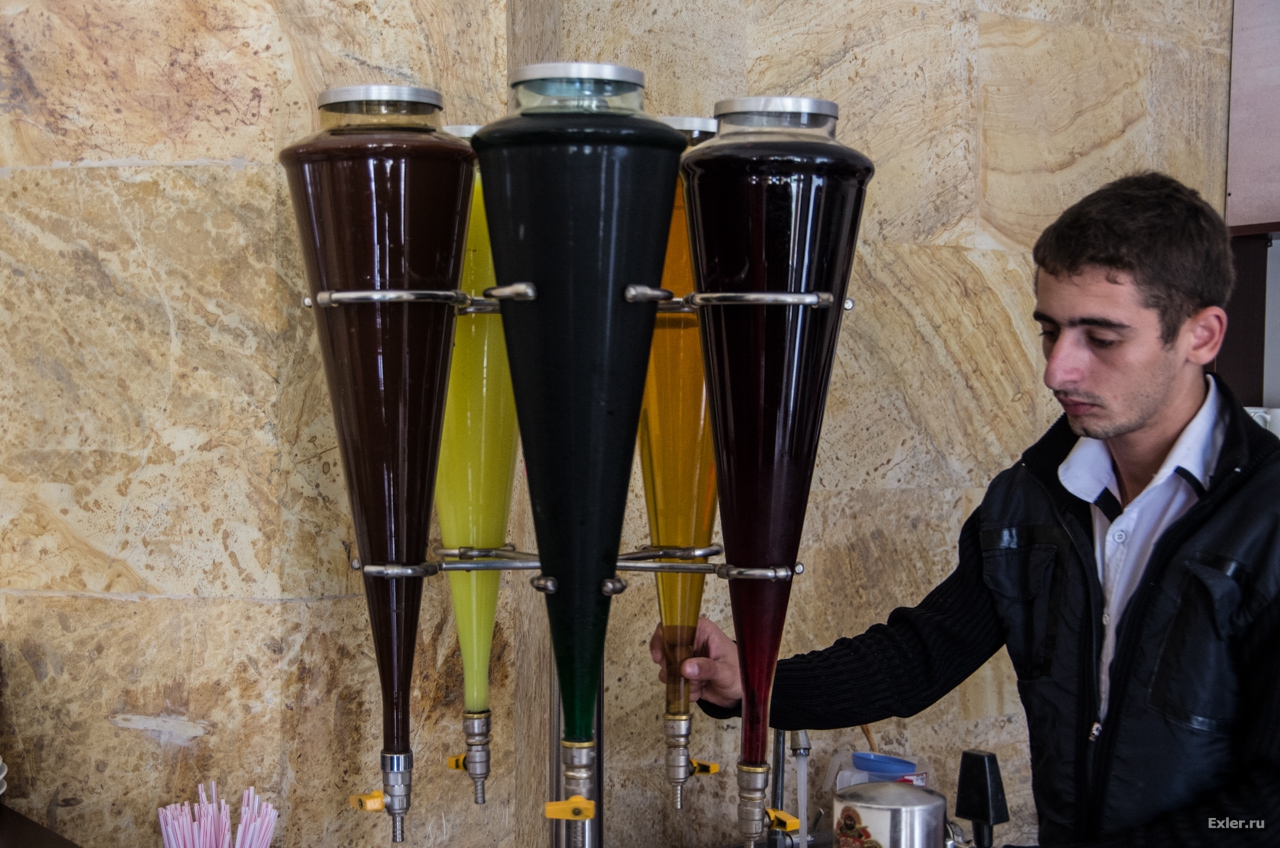 В строении, находящемся на входе в комплекс, обнаружилась кафешка со знаменитыми водами Логидзе - это всякие сладкие напитки, вроде лимонада. Когда-то водами Логидзе торговали по всей Российской империи.