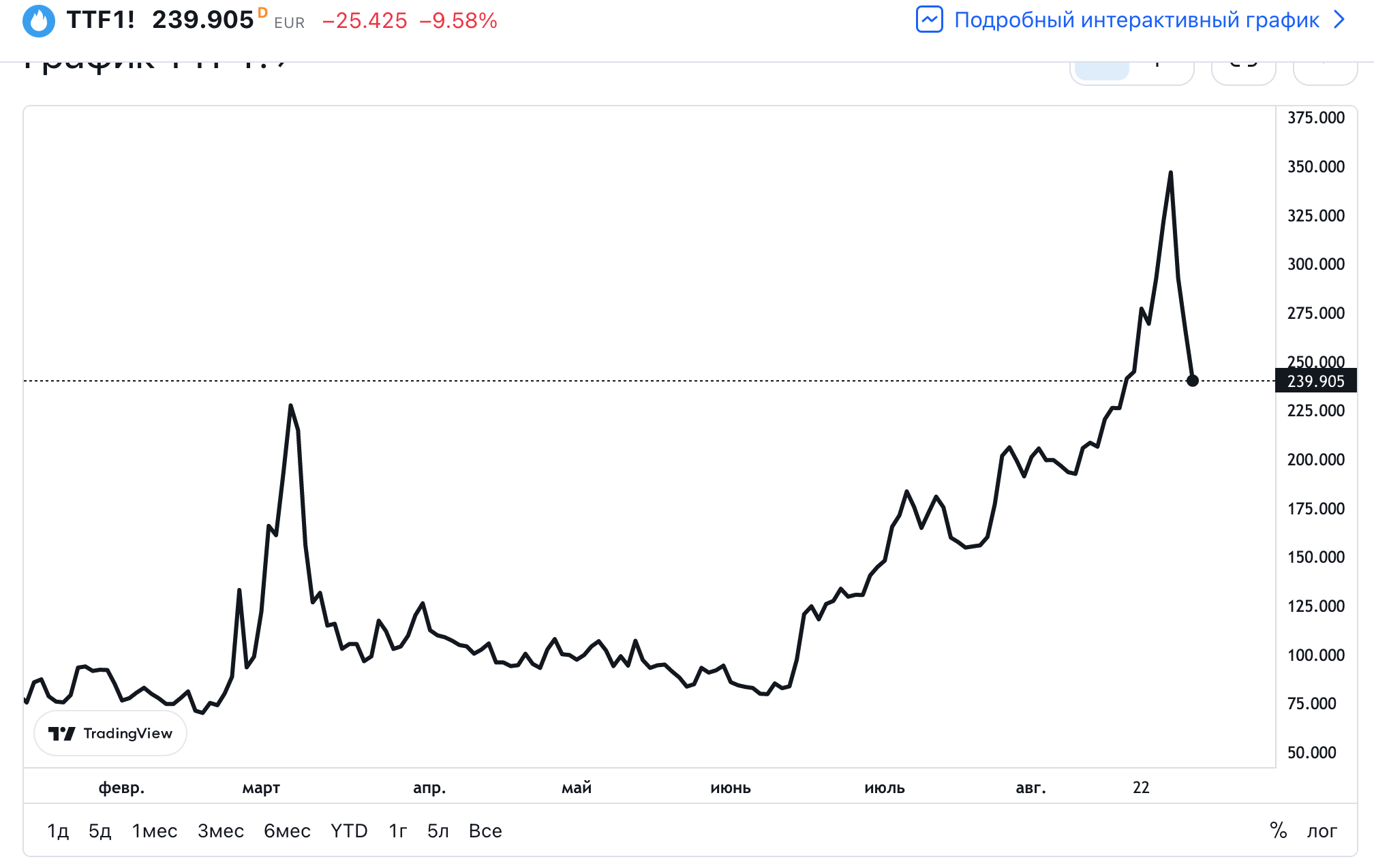 "В Германии стоимость мегаватт-час на оптовом рынке на год обвалилась с исторически рекордных 1050 евро в пятницу до 545 евро в среду."