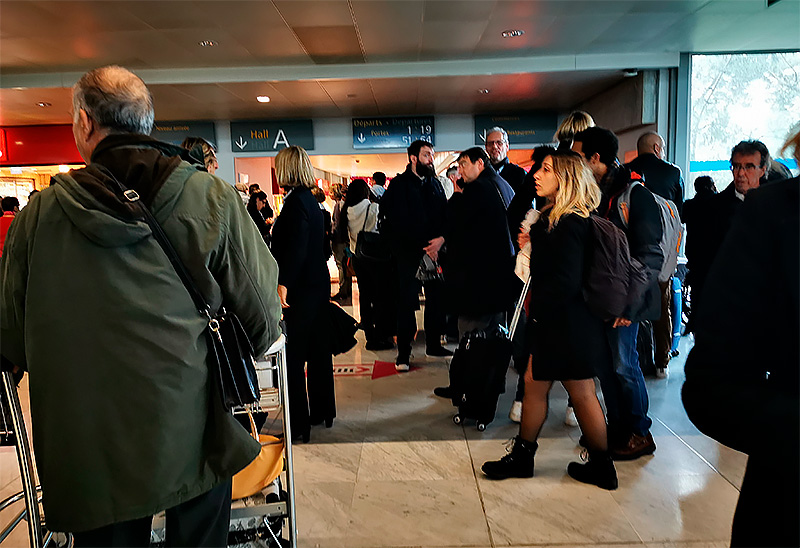 Приехали с группой в аэропорт Бордо. Группа улетает в 14:30 из холла B, у меня прямой рейс через несколько часов из холла А. Проводил наших, иду себе, не торопясь, в холл A. Он явно больше холла B, в котором, по большому счету, вообще ничего нет. А в холле А - и магазинчики, и кафешки. Зашел в магазинчик поискать, что купить в подарок сыну. Подходит какая-то дама в форме, что-то говорит по-французски и показывает руками в сторону холла B - мол, вали отсюда. Я пытаюсь спросить, чего вдруг мне валить, но она показывает один и тот же жест и говорит на французском, что по соображениям безопасности. Неужели это они от меня спасают магазинчик, недоуменно думаю я, но потом вижу, что на самом деле из холла А выгоняют абсолютно всех и туда заходят вооруженные военные. Видать будут что-то искать или кто-то сумку оставил. Я что-то похожее видел в Де Голле, где мой терминал полностью перекрыли где-то на полчаса.