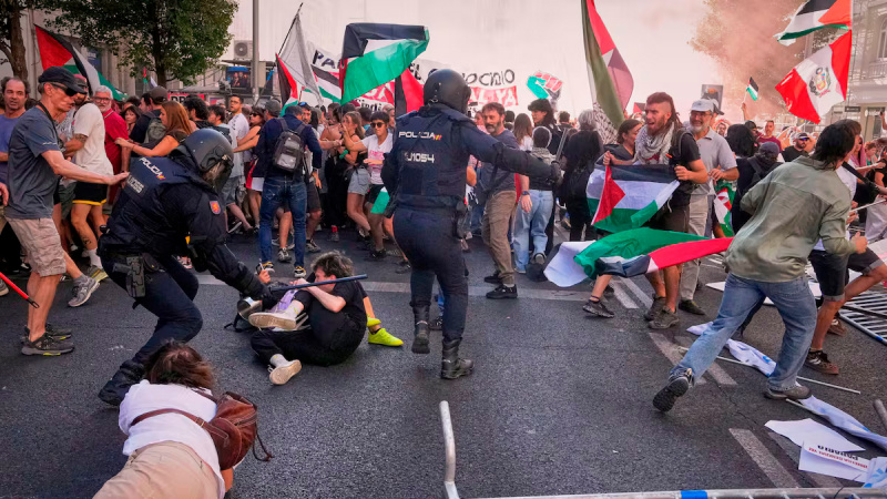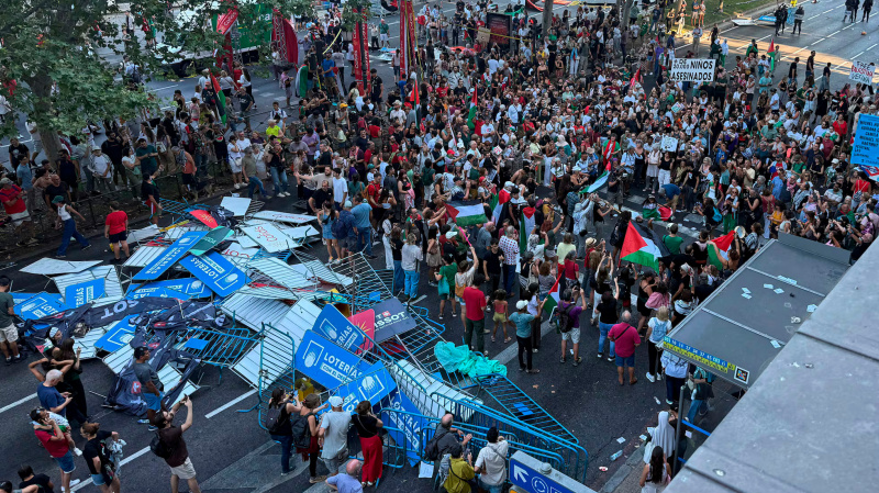 Во время финала на улицы вышло большое количество протестующих - порядка 100 тысяч: они прорвали барьеры на проспекте Пасео дель Прадо и блокировали финишную прямую. Полиция с таким количеством народу ничего не могла сделать, а кроме того, от руководства страны поступил прямой приказ полиции не препятствовать активистам. Что совершенно неудивительно, ведь этих фрипластилинцев изо всех сил науськивают не только социалисты и леваки, но и лично премьер-каброн Санчес, который уже заявил, что "гордится этим протестом". То есть он гордится устроенным бедламом и тем, что Испания, проводящая это крупное международное соревнование, полностью обосралась как страна-организатор, не только не сумев обеспечить финал, но еще и руководство страны само провоцировало этот срыв.