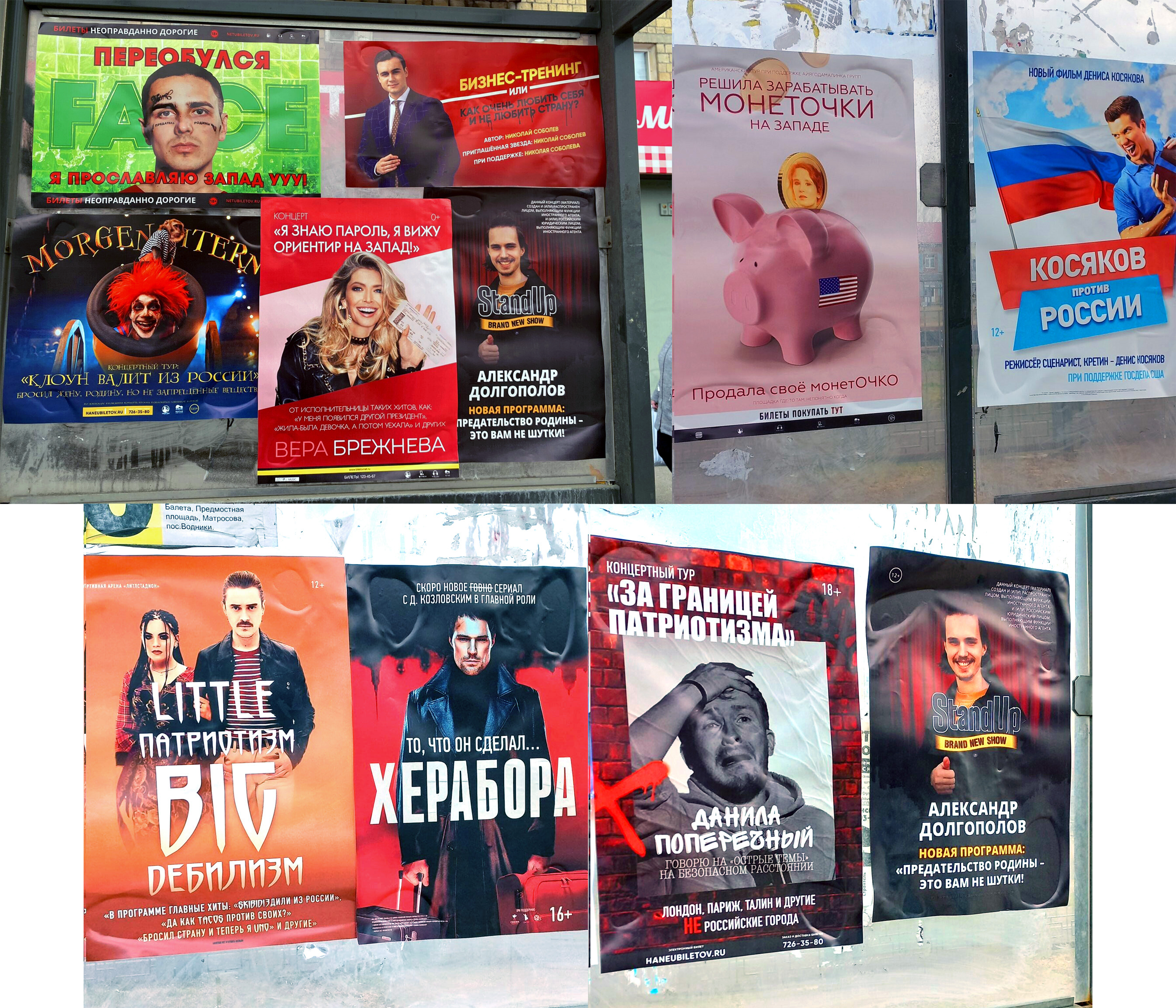 В Красноярске и Петербурге на остановки и здания приклеили постеры со знаменитостями, выступившими против «спецоперации»