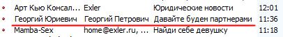 Какой трогательный спам сегодня пришел. Георгий Юрьевич предлагает Георгию Петровичу стать партнерами. Вероятно, сексуальными.