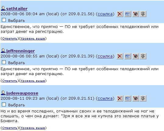 Обнаружил сегодня довольно странных ботов в ЖЖ. Я, как известно, комментарии на почту не получаю, поэтому если кто-то вдруг что-то пишет в комментарии к старым записям, вероятность того, что я это прочту - крайне мала. Но сегодня, когда просматривал ленту скрытых комментариев, вдруг обнаружил, что в одну из старых записей понабежали явные боты и понаписали всякой фигни, которая выглядит примерно следующим образом: